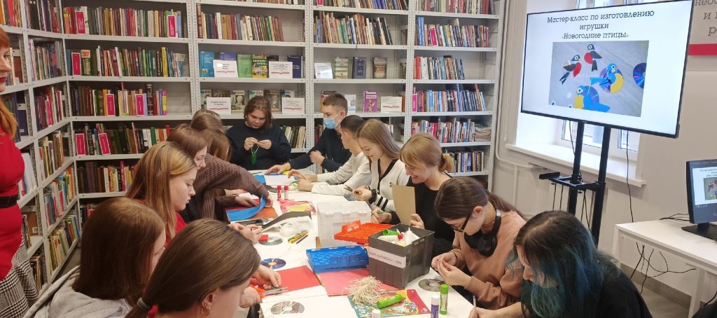 23 декабря 2025 года студенты 1 курса факультета психологии (группа 155) вместе с куратором Маргаритой Леонидовной Дынько приняли участие в мастер-классе по изготовлению новогодних игрушек “Новогодние птицы”, проводимом в библиотеке им. А. Фадеева.