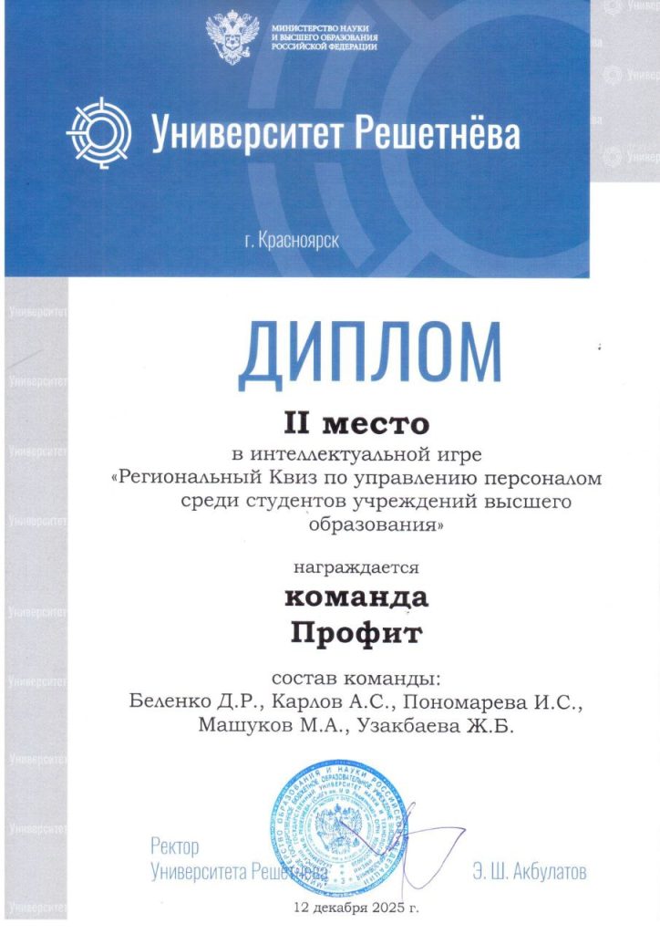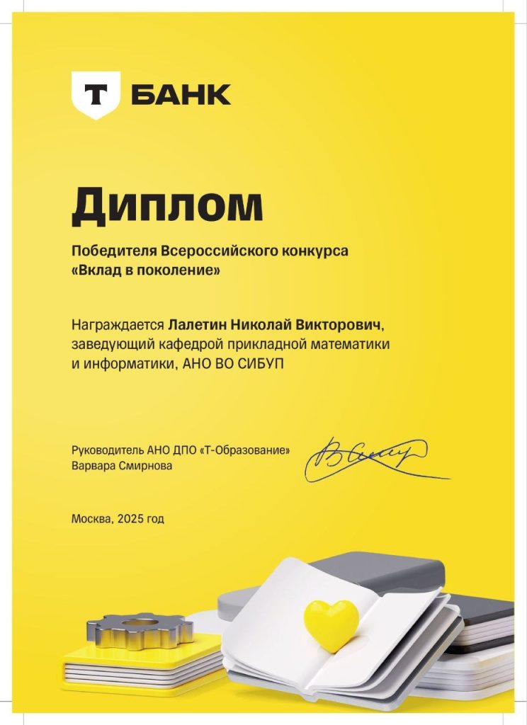 23 декабря 2025 года профессорско-преподавательскому составу АНО ВО СИБУП были вручены дипломы о профессиональной переподготовке по программе «Специалист по организации и предоставлению туристских услуг», которые дают право на ведение профессиональной деятельности в сфере экономики и управления в индустрии туризма и гостеприимства. Повышение компетенции преподавателя – это ключевой фактор в подготовке конкурентоспособных специалистов